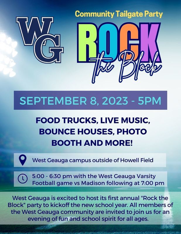 Mark your calendar for a back-to-school party you won't want to miss! You are invited to come Rock the Block on September 8 at 5:00pm.